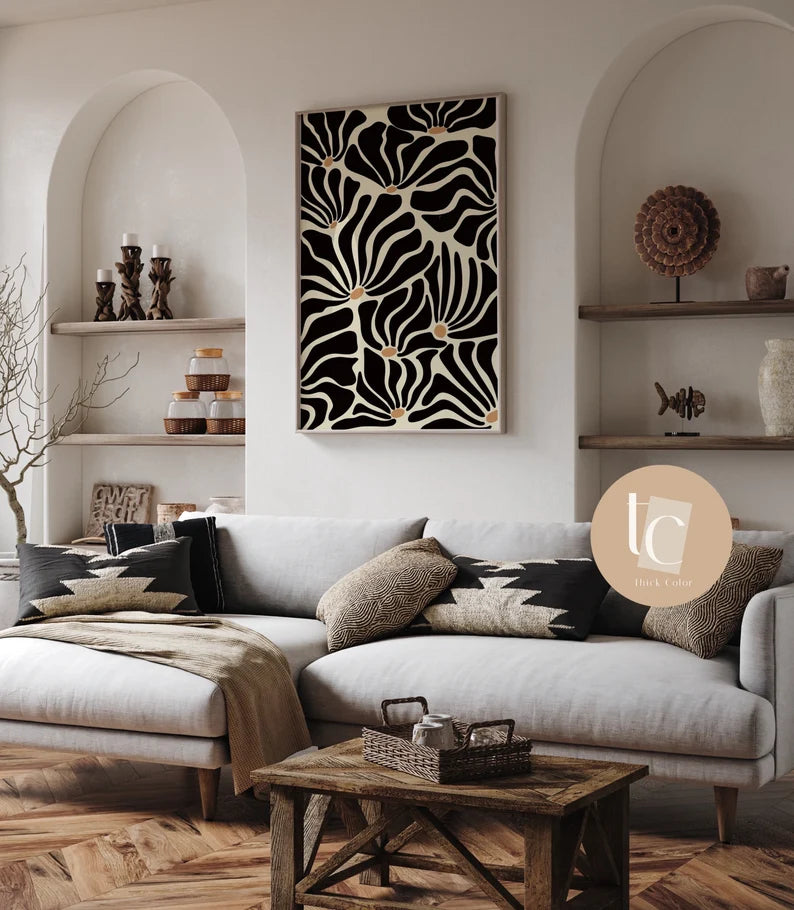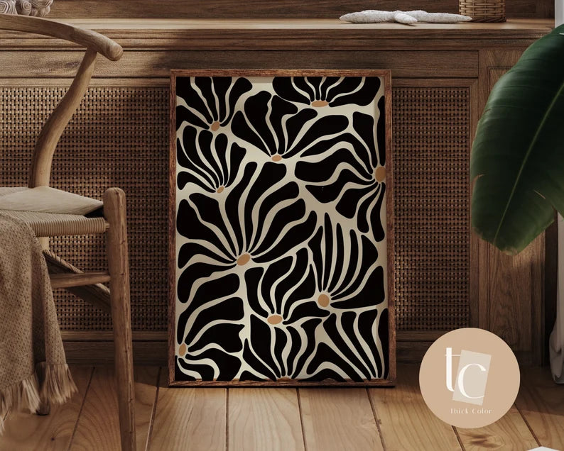 This is a handmade hand drawn botanical art print inspired by simple colors and simple abstraction. The print is printed on a canvas. All of these prints are handmade and the artworks are recreated by hand digitally. Please note, the print is shipped without frame.